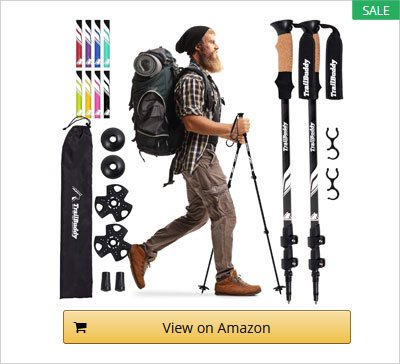Our top choice is the TrailBuddy Trekking Poles, which are made of impressive tough 7075 aluminum material. They can be adjusted to the perfect height within just seconds.