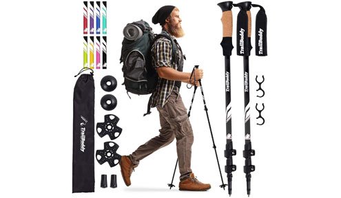 Our top choice is the TrailBuddy Trekking Poles, which are made of impressive tough 7075 aluminum material. They can be adjusted to the perfect height within just seconds.